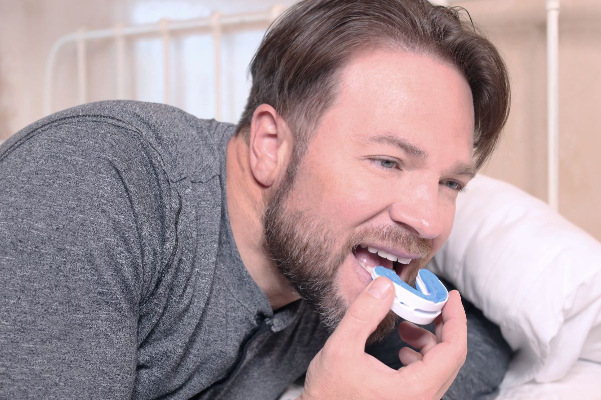 Our customizable anti-snoring mouthpiece opens your airway to help you breathe easier and sleep deeply—so you wake up rested, recharged, and ready for the day.